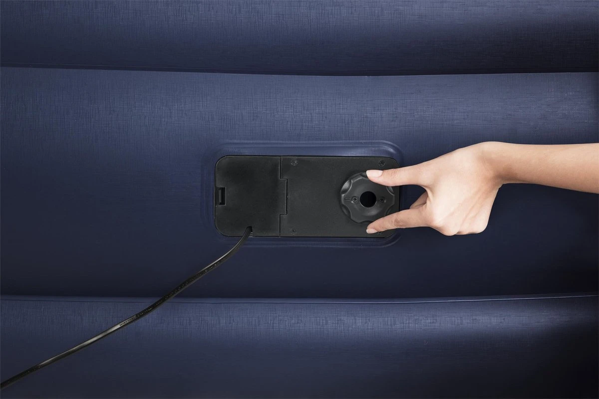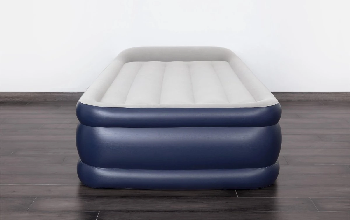 Dit sterke luchtbed voor indoor gebruik is gemaakt van voorgetest vinyl, uitgerust met een ingebouwde luchtpomp en voorzien van een aangename geruwde toplaag. Het bed heeft een comfortabele rand rondom, zodat afrollen wordt voorkomen. De Tritech I-beam constructie is opgebouwd uit 3 duurzame lagen, zodat het bed zijn vorm behoud en de hele nacht stevig blijft. Ingebouwd hoofdkussen. Wordt geleverd incl. reparatie patch en met een opbergzak. Afmeting: 191x97x46 cm.