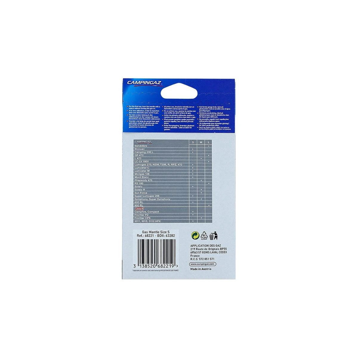 Een set van 3 ’type S’ gloeikousjes. Geschikt voor de Lumostar, Lumogaz en Bivouac lantaarns. Zorgt voor een helder wit licht. Bevat geen asbest of radio-actieve stoffen.