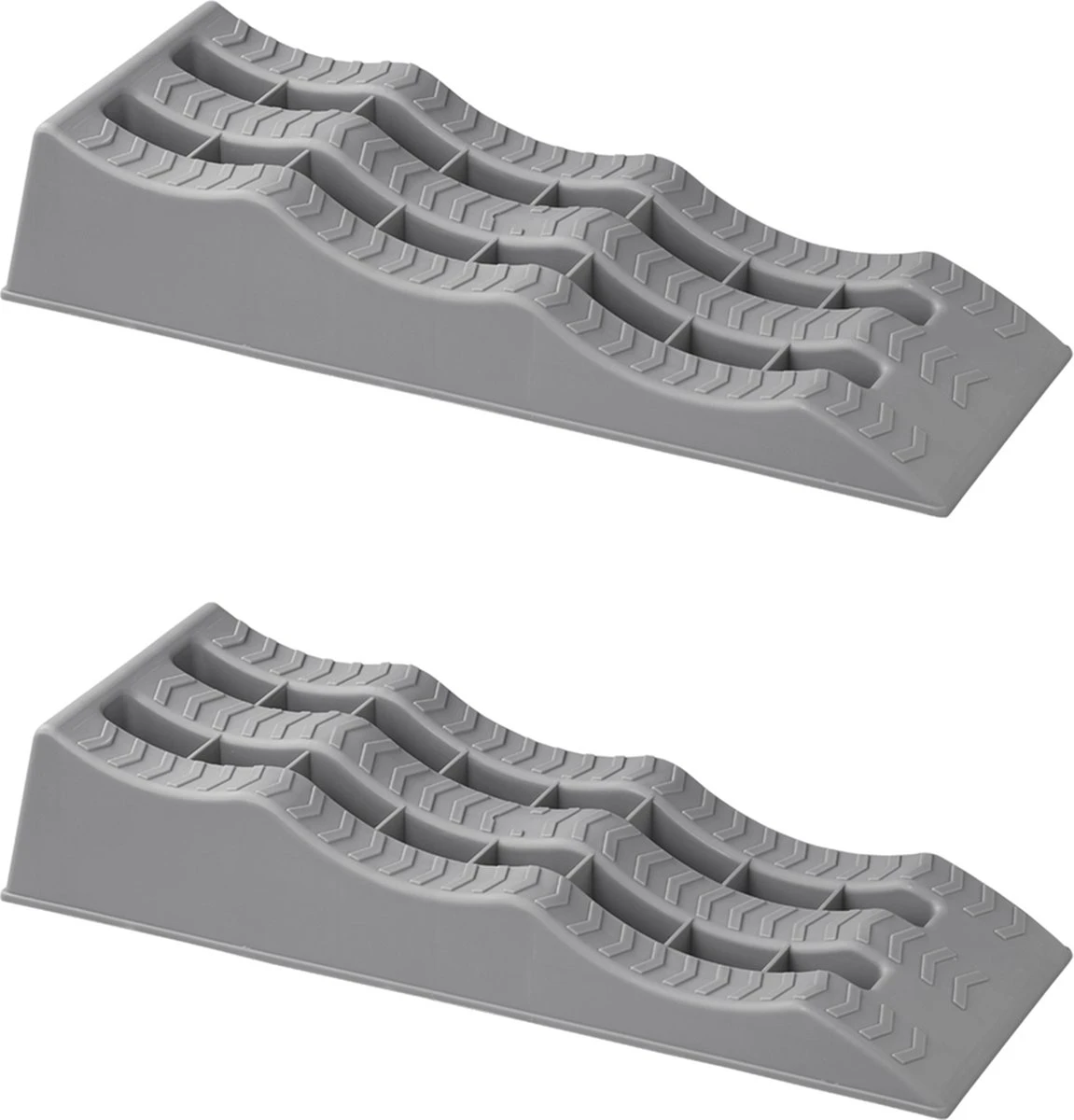 Om de caravan of camper goed waterpas te zetten gebruik je deze oprijblokken. Ze zijn geschikt voor elk terrein en hebben een geribbeld oppervlak voor extra grip. Gemaakt van hoge kwaliteit lichtgewicht kunststof. De oprijblokken hebben 3 hoogtes van 4, 7 en 10 cm. Wordt geleverd met handige draagtas. Maximale aslast: 5000kg.