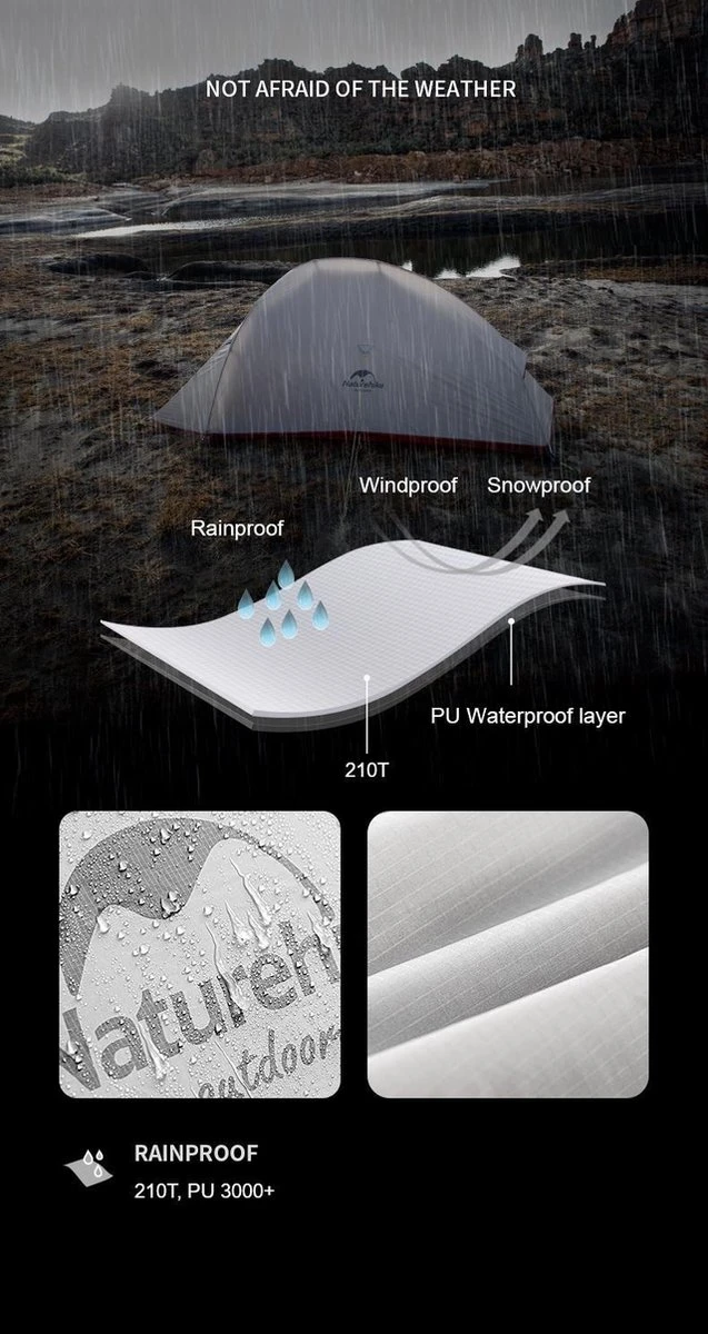 Cloud Up 1 Upgraded – Naturehike® – 1 Persoons Tent – Lichtgewicht Tent – Incl. Grondzeil – 210T 3000mm – Outdoor – Waterdicht – Hiking & Wandelen